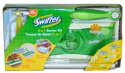 - Starter kit includes 1 Sweeper, 6 dry sweeping cloths, 4 wet mopping cloths, and 1 Swiffer Duster